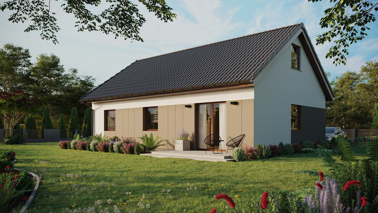 Projekt domu ERDOL 3 o powierzchni 82 m² (130 m² w wersji z poddaszem użytkowym) został stworzony tak, aby budynek zapewnił swoim mieszkańcom wygodne i przestronne wnętrza, w których znajdzie się miejsce na wszystko, czego potrzeba. Zastosowane w nim nowoczesne technologie i ekologiczne rozwiązania, sprawiają, że jest to dom energooszczędny, który funkcjonuje w harmonii z naturą. Do budowy wykorzystuje się drewno KVH stanowiące podstawę całej konstrukcji. Odpowiednio dobrane materiały izolacyjne sprawiają, że dom chroniony jest przed stratami ciepła.