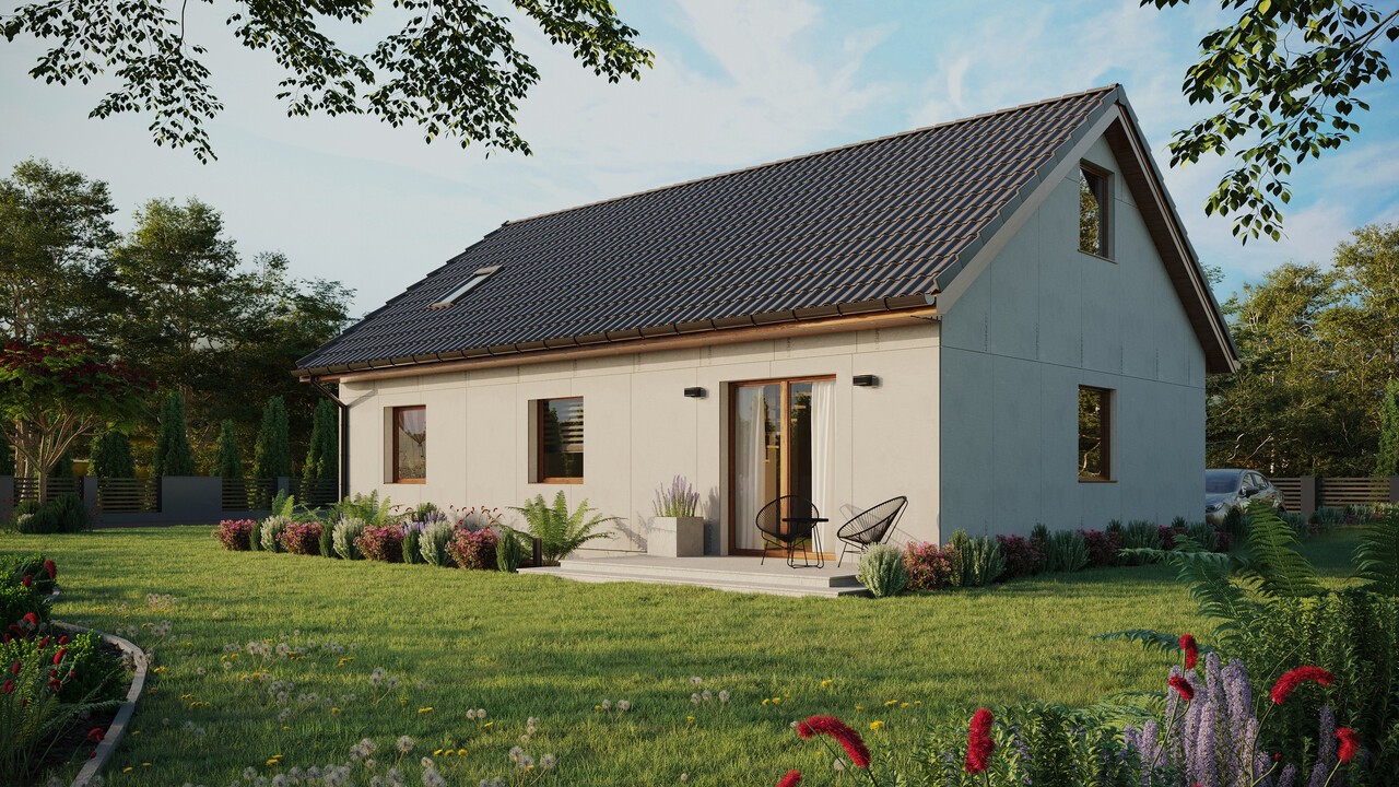 Projekt domu ERDOL 3 o powierzchni 82 m² (130 m² w wersji z poddaszem użytkowym) został stworzony tak, aby budynek zapewnił swoim mieszkańcom wygodne i przestronne wnętrza, w których znajdzie się miejsce na wszystko, czego potrzeba. Zastosowane w nim nowoczesne technologie i ekologiczne rozwiązania, sprawiają, że jest to dom energooszczędny, który funkcjonuje w harmonii z naturą. Do budowy wykorzystuje się drewno KVH stanowiące podstawę całej konstrukcji. Odpowiednio dobrane materiały izolacyjne sprawiają, że dom chroniony jest przed stratami ciepła.