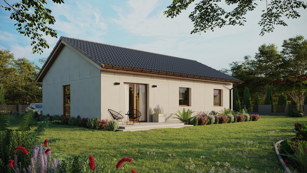 Projekt domu ERDOL 3 o powierzchni 82 m² (130 m² w wersji z poddaszem użytkowym) został stworzony tak, aby budynek zapewnił swoim mieszkańcom wygodne i przestronne wnętrza, w których znajdzie się miejsce na wszystko, czego potrzeba. Zastosowane w nim nowoczesne technologie i ekologiczne rozwiązania, sprawiają, że jest to dom energooszczędny, który funkcjonuje w harmonii z naturą. Do budowy wykorzystuje się drewno KVH stanowiące podstawę całej konstrukcji. Odpowiednio dobrane materiały izolacyjne sprawiają, że dom chroniony jest przed stratami ciepła.