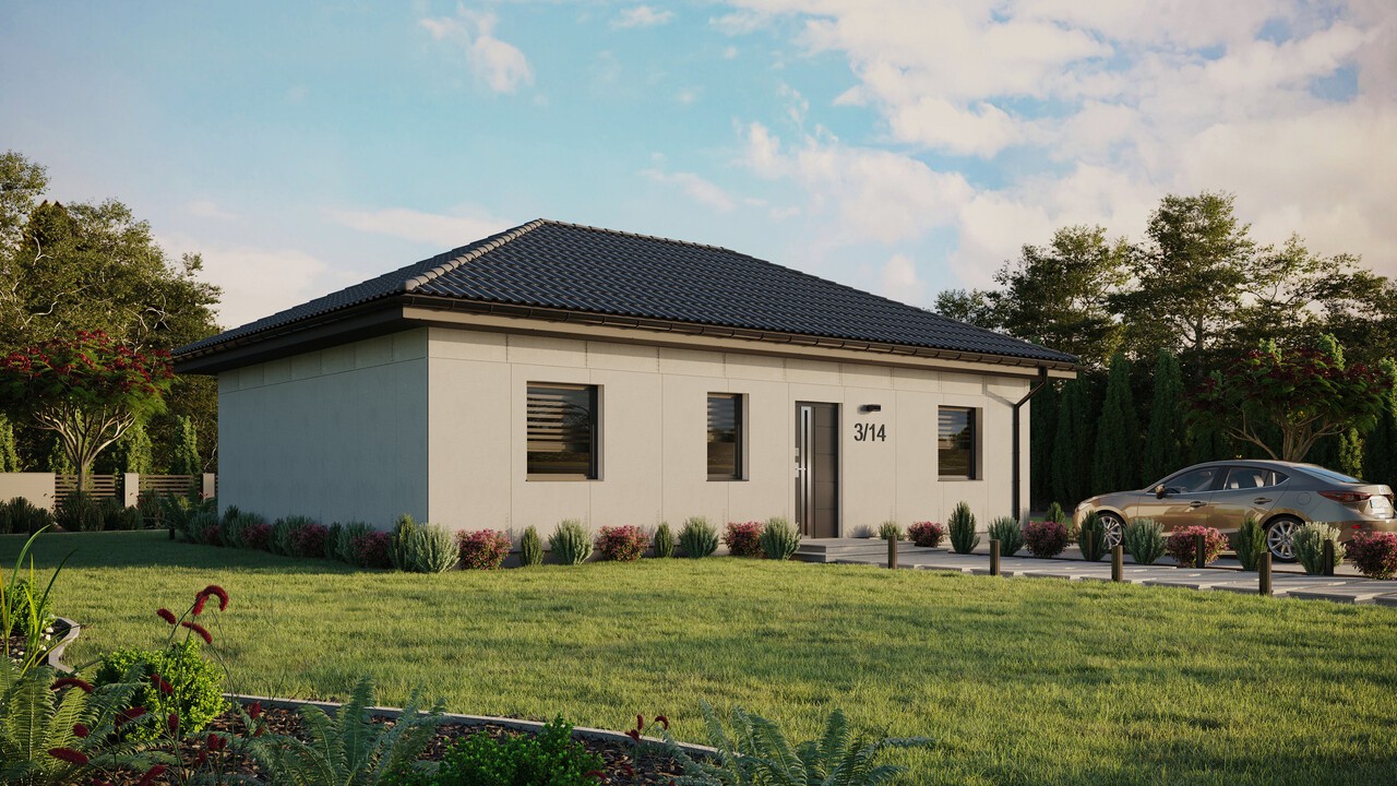 Projekt domu ERDOL 3 o powierzchni 82 m² (130 m² w wersji z poddaszem użytkowym) został stworzony tak, aby budynek zapewnił swoim mieszkańcom wygodne i przestronne wnętrza, w których znajdzie się miejsce na wszystko, czego potrzeba. Zastosowane w nim nowoczesne technologie i ekologiczne rozwiązania, sprawiają, że jest to dom energooszczędny, który funkcjonuje w harmonii z naturą. Do budowy wykorzystuje się drewno KVH stanowiące podstawę całej konstrukcji. Odpowiednio dobrane materiały izolacyjne sprawiają, że dom chroniony jest przed stratami ciepła.