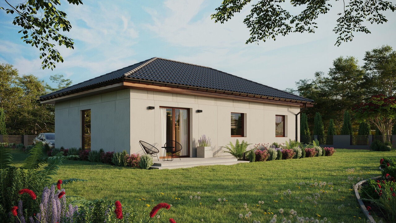 Projekt domu ERDOL 3 o powierzchni 82 m² (130 m² w wersji z poddaszem użytkowym) został stworzony tak, aby budynek zapewnił swoim mieszkańcom wygodne i przestronne wnętrza, w których znajdzie się miejsce na wszystko, czego potrzeba. Zastosowane w nim nowoczesne technologie i ekologiczne rozwiązania, sprawiają, że jest to dom energooszczędny, który funkcjonuje w harmonii z naturą. Do budowy wykorzystuje się drewno KVH stanowiące podstawę całej konstrukcji. Odpowiednio dobrane materiały izolacyjne sprawiają, że dom chroniony jest przed stratami ciepła.