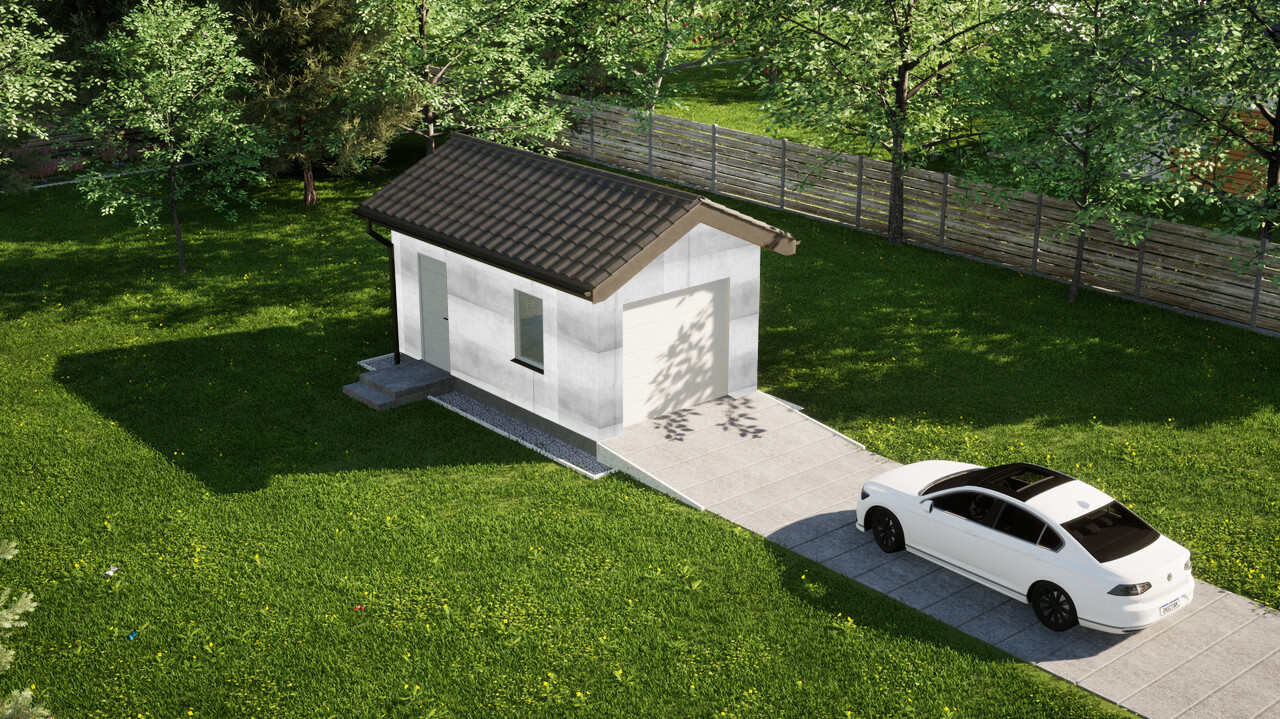 Garaż jednostanowiskowy ERDOL G1 o powierzchni 17,2 m² świetnie sprawdzi się nie tylko do garażowania samochodu, ale także do przechowywania wszystkich sprzętów, których nie potrzebujesz na co dzień w swoim domu, zyskując tym samym sporo dodatkowej przestrzeni.