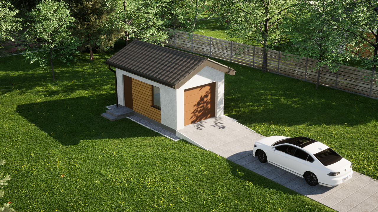 Garaż jednostanowiskowy ERDOL G1 o powierzchni 17,2 m² świetnie sprawdzi się nie tylko do garażowania samochodu, ale także do przechowywania wszystkich sprzętów, których nie potrzebujesz na co dzień w swoim domu, zyskując tym samym sporo dodatkowej przestrzeni.