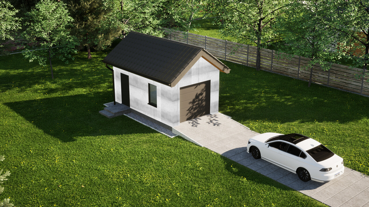 Garaż jednostanowiskowy ERDOL G1 o powierzchni 17,2 m² świetnie sprawdzi się nie tylko do garażowania samochodu, ale także do przechowywania wszystkich sprzętów, których nie potrzebujesz na co dzień w swoim domu, zyskując tym samym sporo dodatkowej przestrzeni.