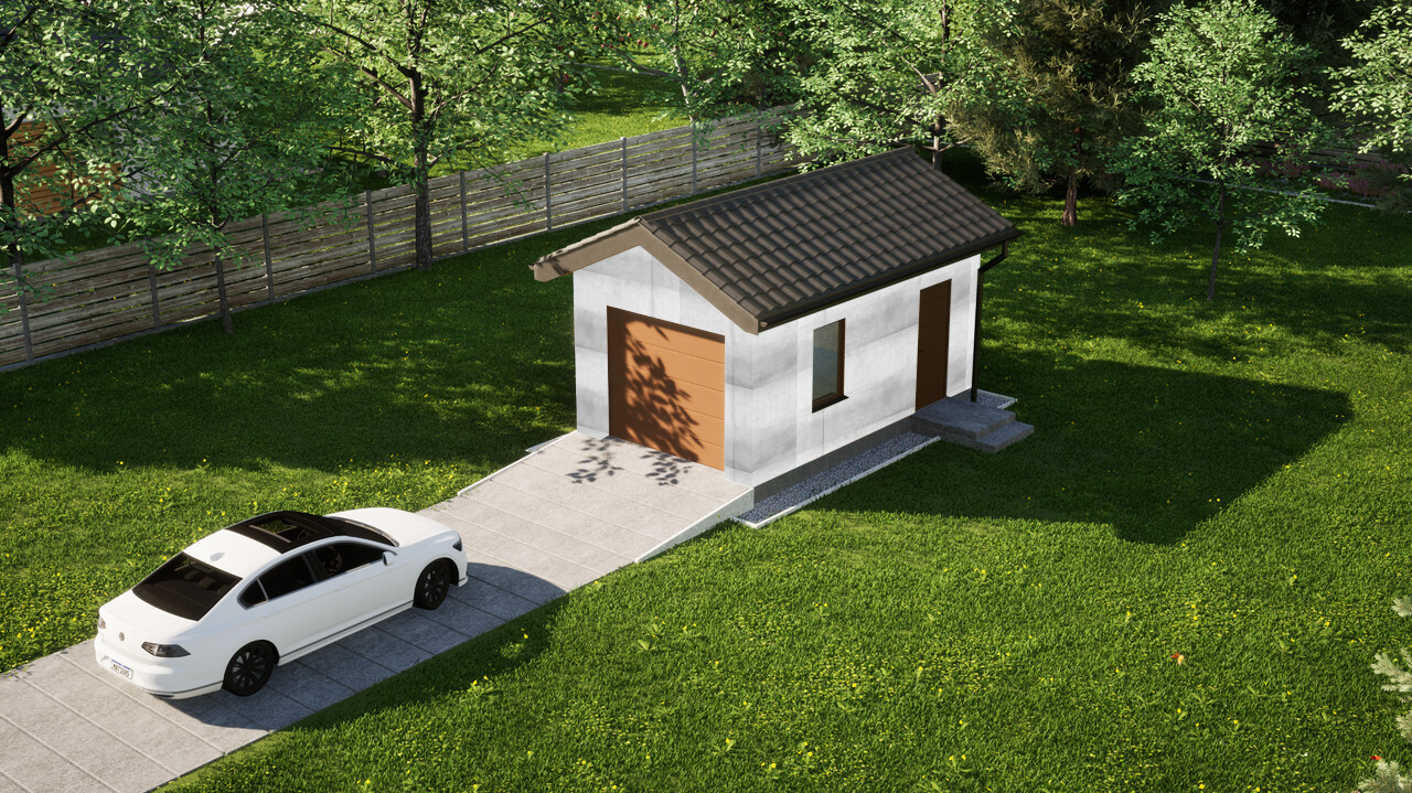 Garaż jednostanowiskowy ERDOL G1 o powierzchni 17,2 m² świetnie sprawdzi się nie tylko do garażowania samochodu, ale także do przechowywania wszystkich sprzętów, których nie potrzebujesz na co dzień w swoim domu, zyskując tym samym sporo dodatkowej przestrzeni.