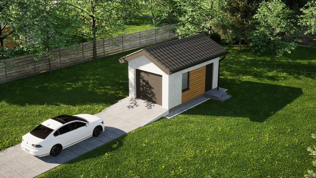 Garaż jednostanowiskowy ERDOL G1 o powierzchni 17,2 m² świetnie sprawdzi się nie tylko do garażowania samochodu, ale także do przechowywania wszystkich sprzętów, których nie potrzebujesz na co dzień w swoim domu, zyskując tym samym sporo dodatkowej przestrzeni.