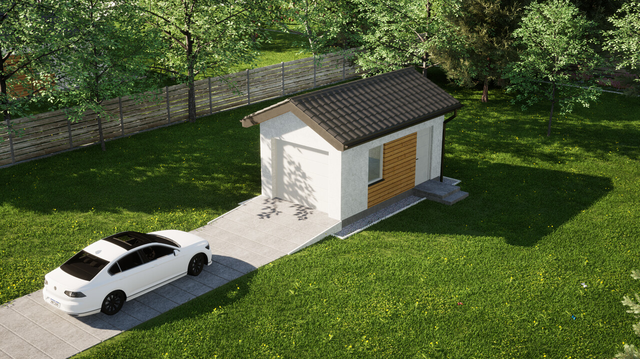 Garaż jednostanowiskowy ERDOL G1 o powierzchni 17,2 m² świetnie sprawdzi się nie tylko do garażowania samochodu, ale także do przechowywania wszystkich sprzętów, których nie potrzebujesz na co dzień w swoim domu, zyskując tym samym sporo dodatkowej przestrzeni.