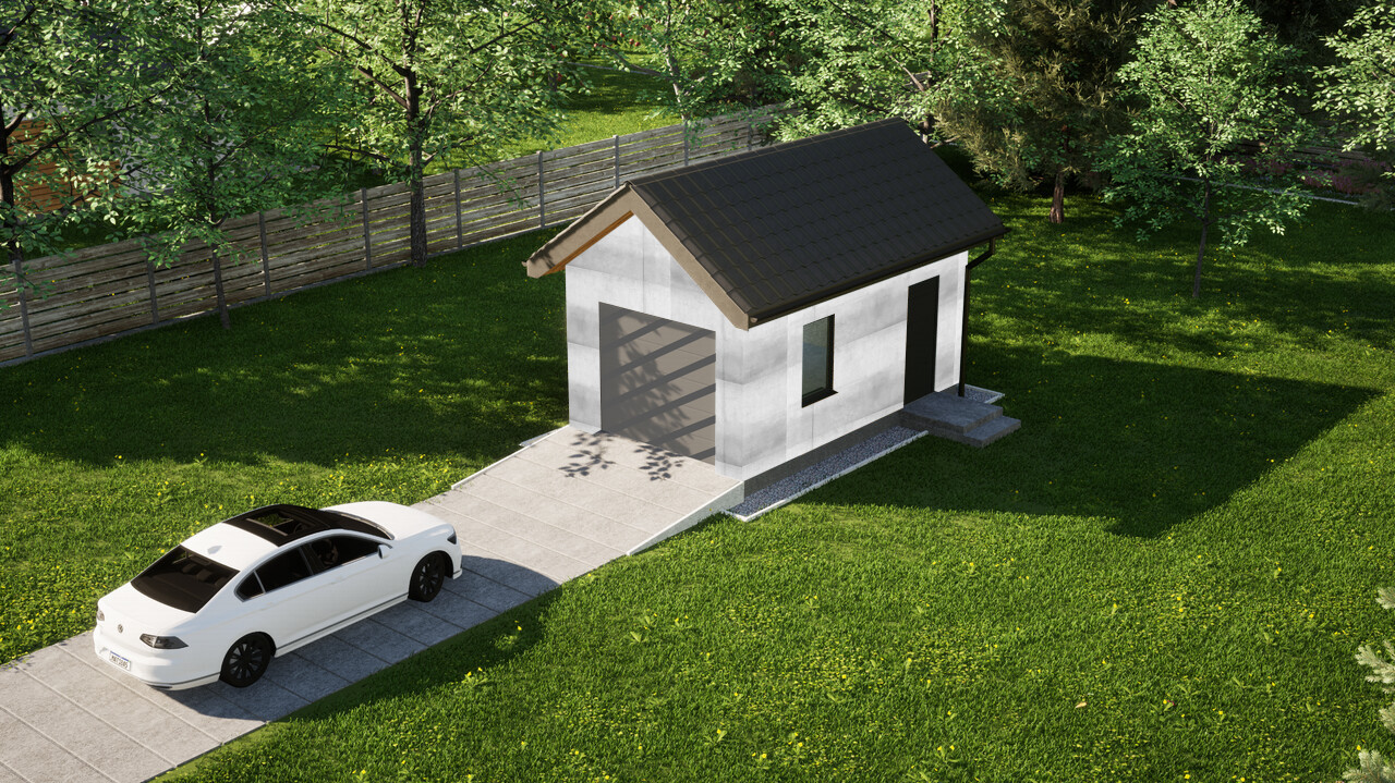 Garaż jednostanowiskowy ERDOL G1 o powierzchni 17,2 m² świetnie sprawdzi się nie tylko do garażowania samochodu, ale także do przechowywania wszystkich sprzętów, których nie potrzebujesz na co dzień w swoim domu, zyskując tym samym sporo dodatkowej przestrzeni.