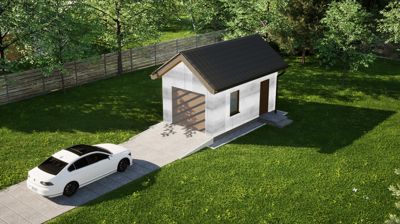 Garaż jednostanowiskowy ERDOL G1 o powierzchni 17,2 m² świetnie sprawdzi się nie tylko do garażowania samochodu, ale także do przechowywania wszystkich sprzętów, których nie potrzebujesz na co dzień w swoim domu, zyskując tym samym sporo dodatkowej przestrzeni.