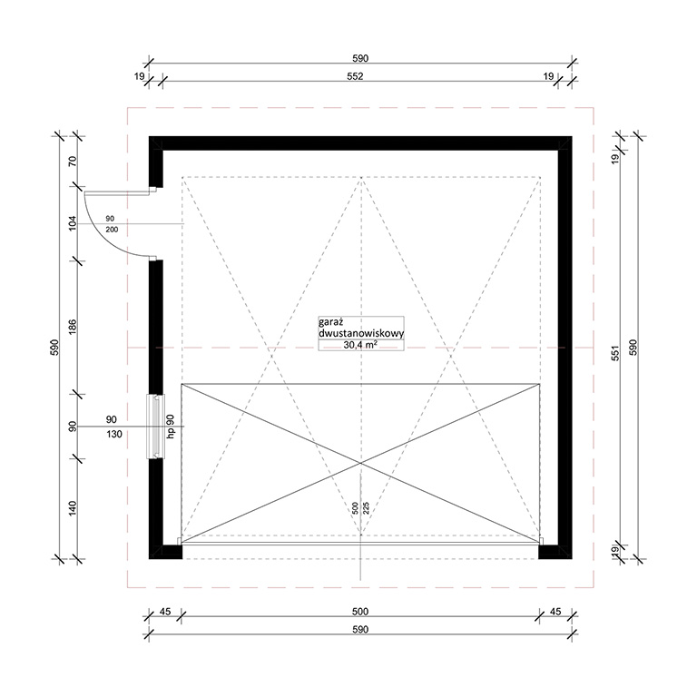 Dwustanowiskowy garaż ERDOL G2 o powierzchni 30,4 m² to doskonała opcja dla osób, które chcą trzymać w bezpiecznym miejscu dwa samochody lub potrzebują miejsca dla jednego auta oraz dodatkowej przestrzeni do przechowywania różnego rodzaju sprzętów.