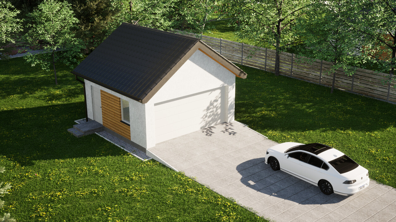 Dwustanowiskowy garaż ERDOL G2 o powierzchni 30,4 m² to doskonała opcja dla osób, które chcą trzymać w bezpiecznym miejscu dwa samochody lub potrzebują miejsca dla jednego auta oraz dodatkowej przestrzeni do przechowywania różnego rodzaju sprzętów.
