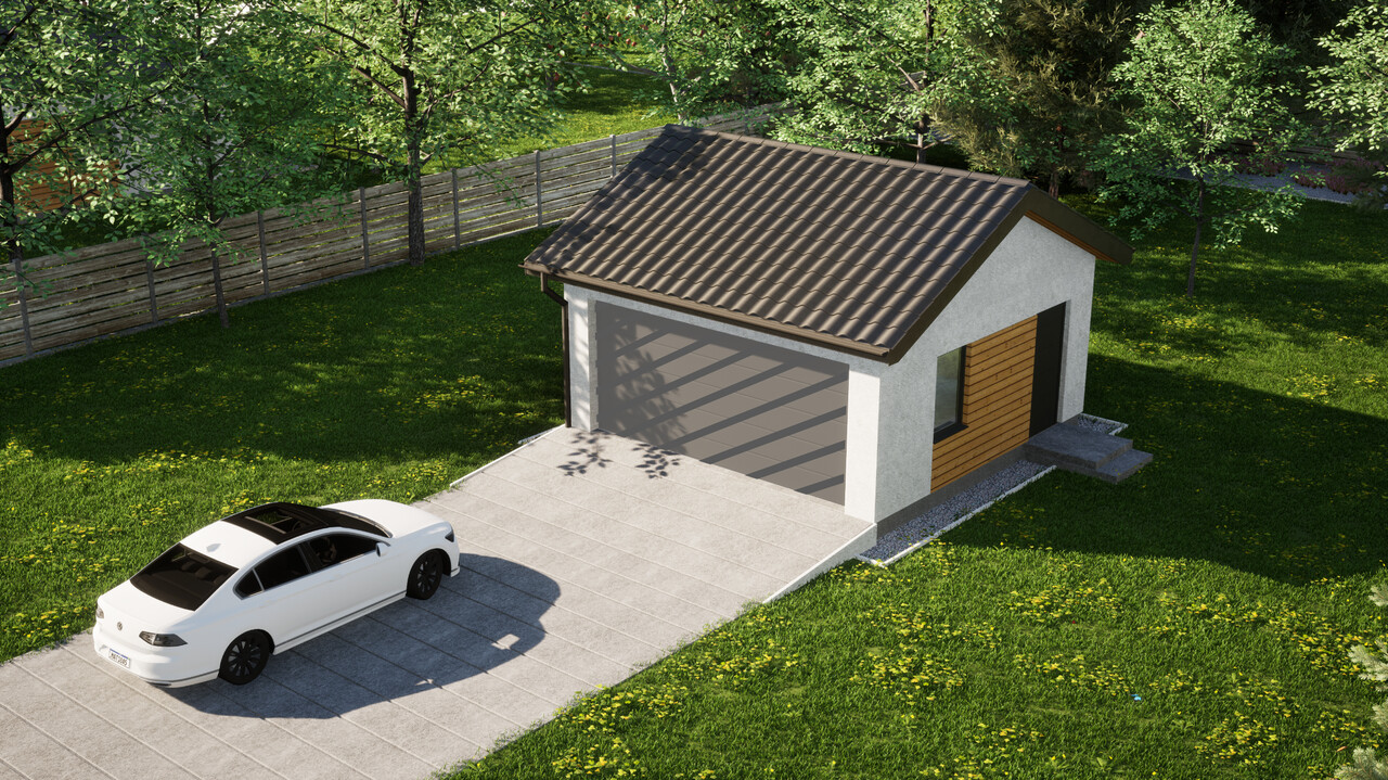 Dwustanowiskowy garaż ERDOL G2 o powierzchni 30,4 m² to doskonała opcja dla osób, które chcą trzymać w bezpiecznym miejscu dwa samochody lub potrzebują miejsca dla jednego auta oraz dodatkowej przestrzeni do przechowywania różnego rodzaju sprzętów.