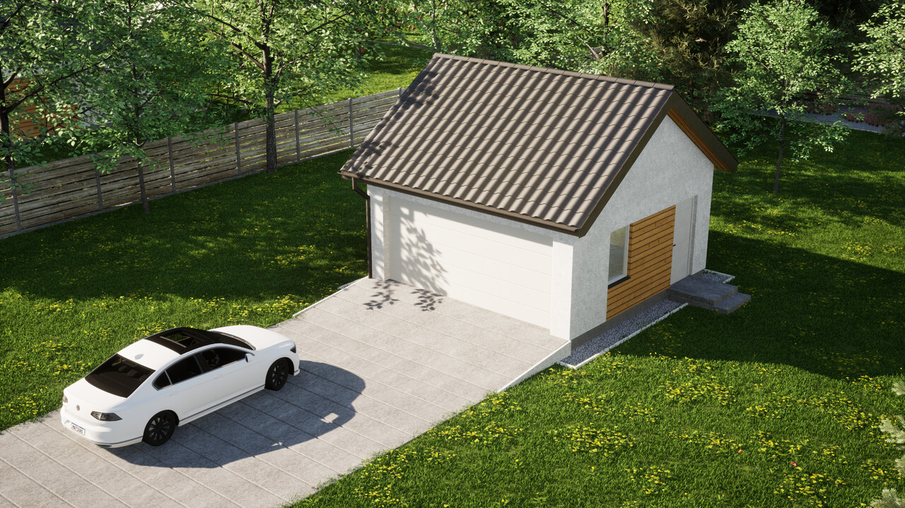Dwustanowiskowy garaż ERDOL G2 o powierzchni 30,4 m² to doskonała opcja dla osób, które chcą trzymać w bezpiecznym miejscu dwa samochody lub potrzebują miejsca dla jednego auta oraz dodatkowej przestrzeni do przechowywania różnego rodzaju sprzętów.